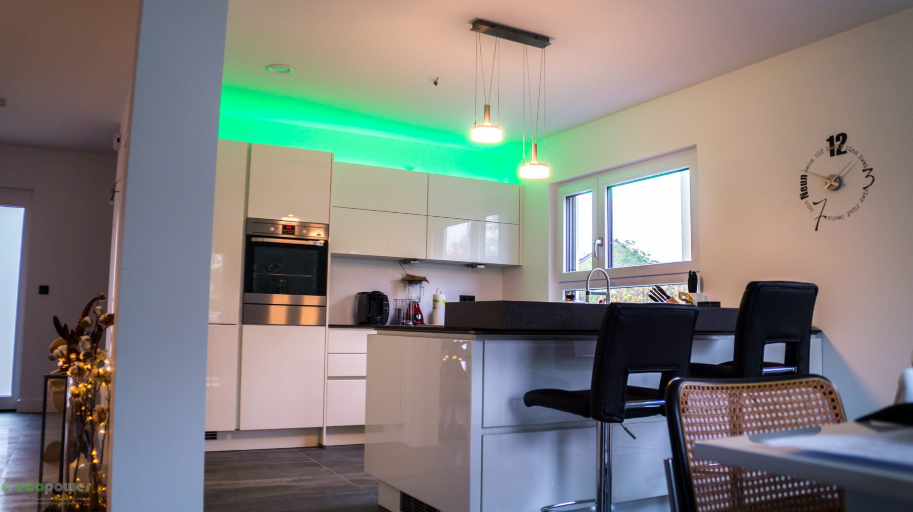 Nach einigen Anpassungen und Verfeinerungen der Elektroplanung wurde das Projekt relativ zügig umgesetzt, sodass das Smart Home bereits 3 Monate nach der Elektro-Rohinstallation bezugsfertig ist. Neben der gesamten Elektroinstallation inklusive Loxone Steuerung und teilen der Beleuchtung wurde durch unsere Kollegen auch eine PV-Anlage mit Fronius Wechselrichter installiert und in Betrieb genommen.