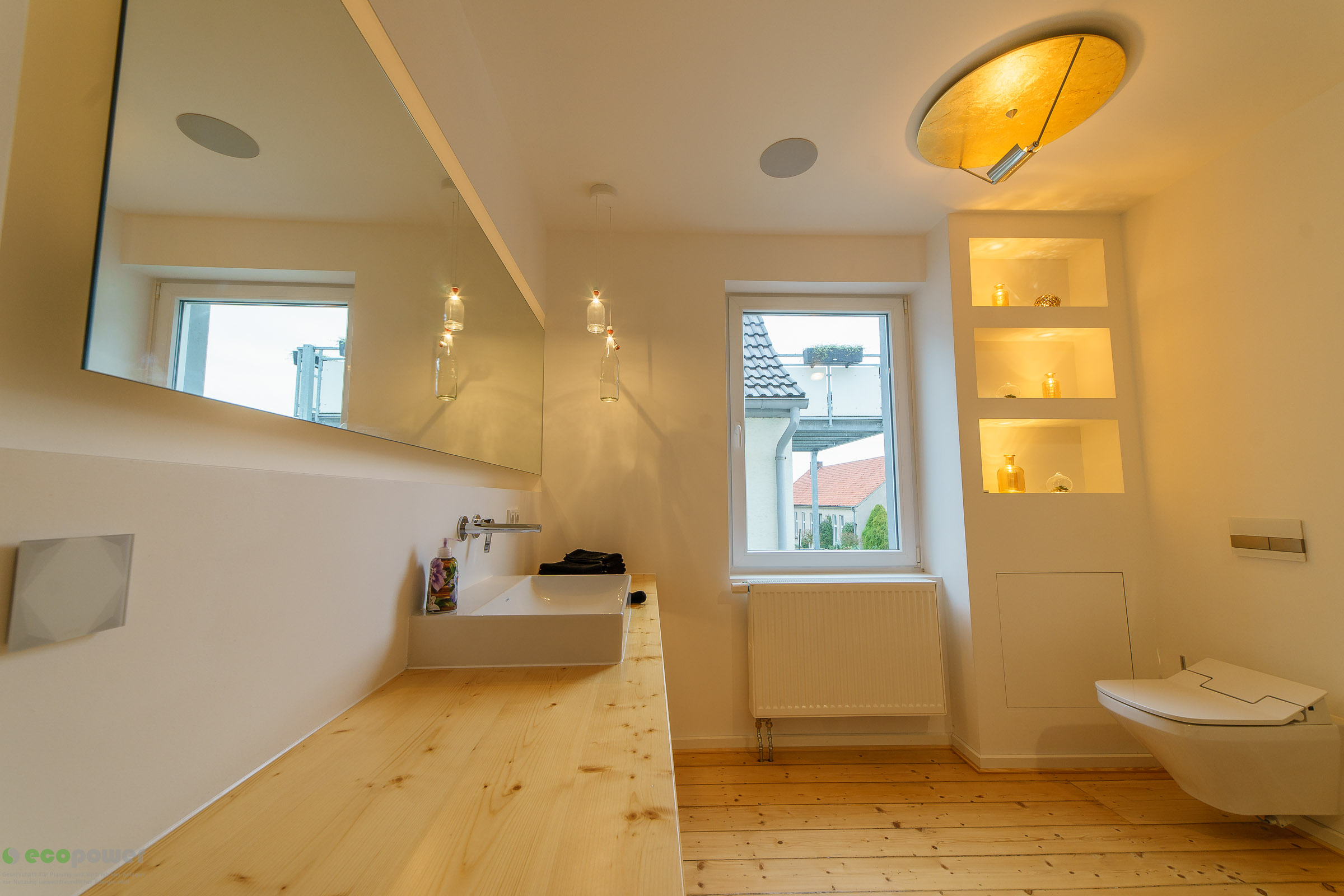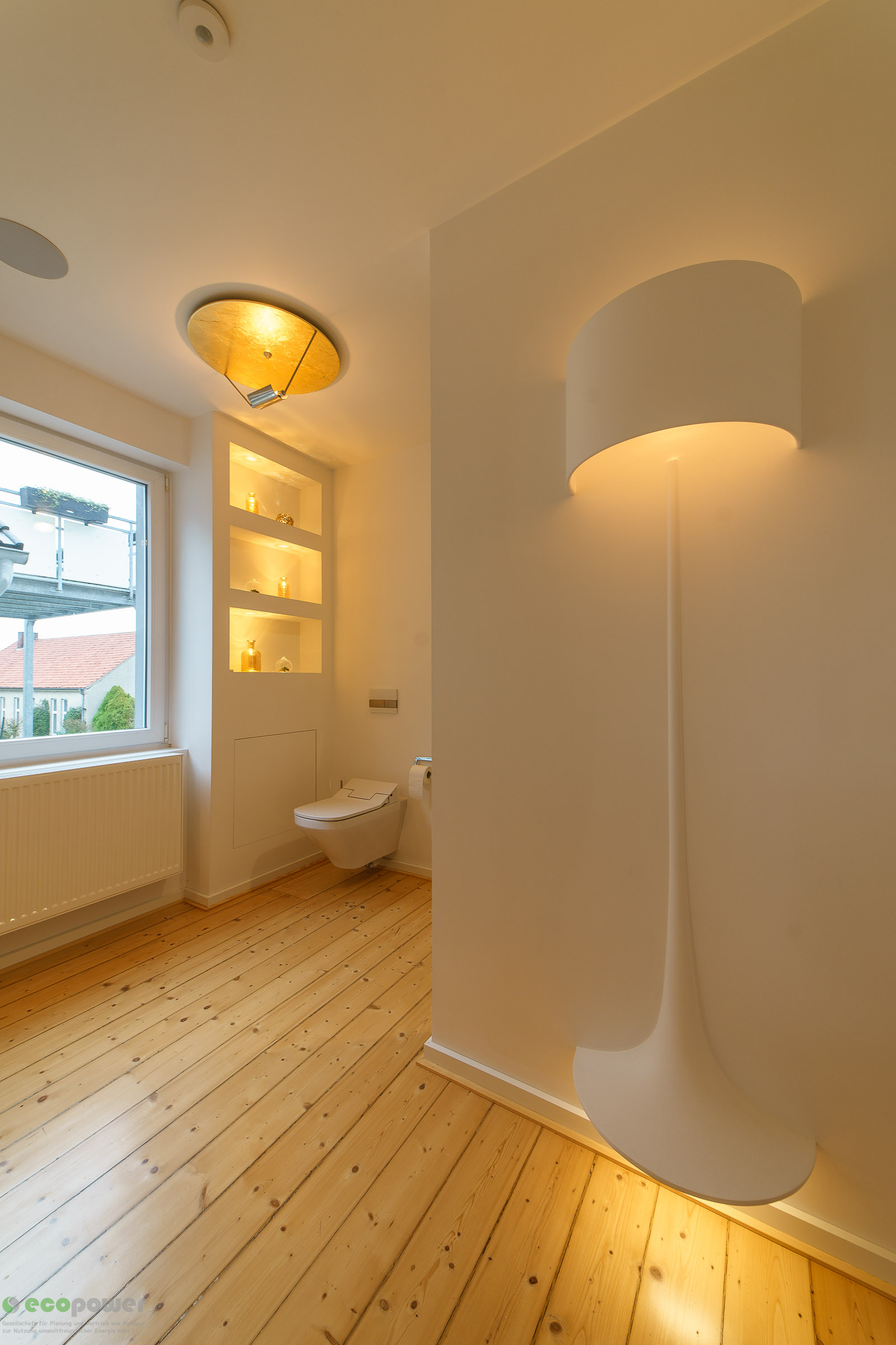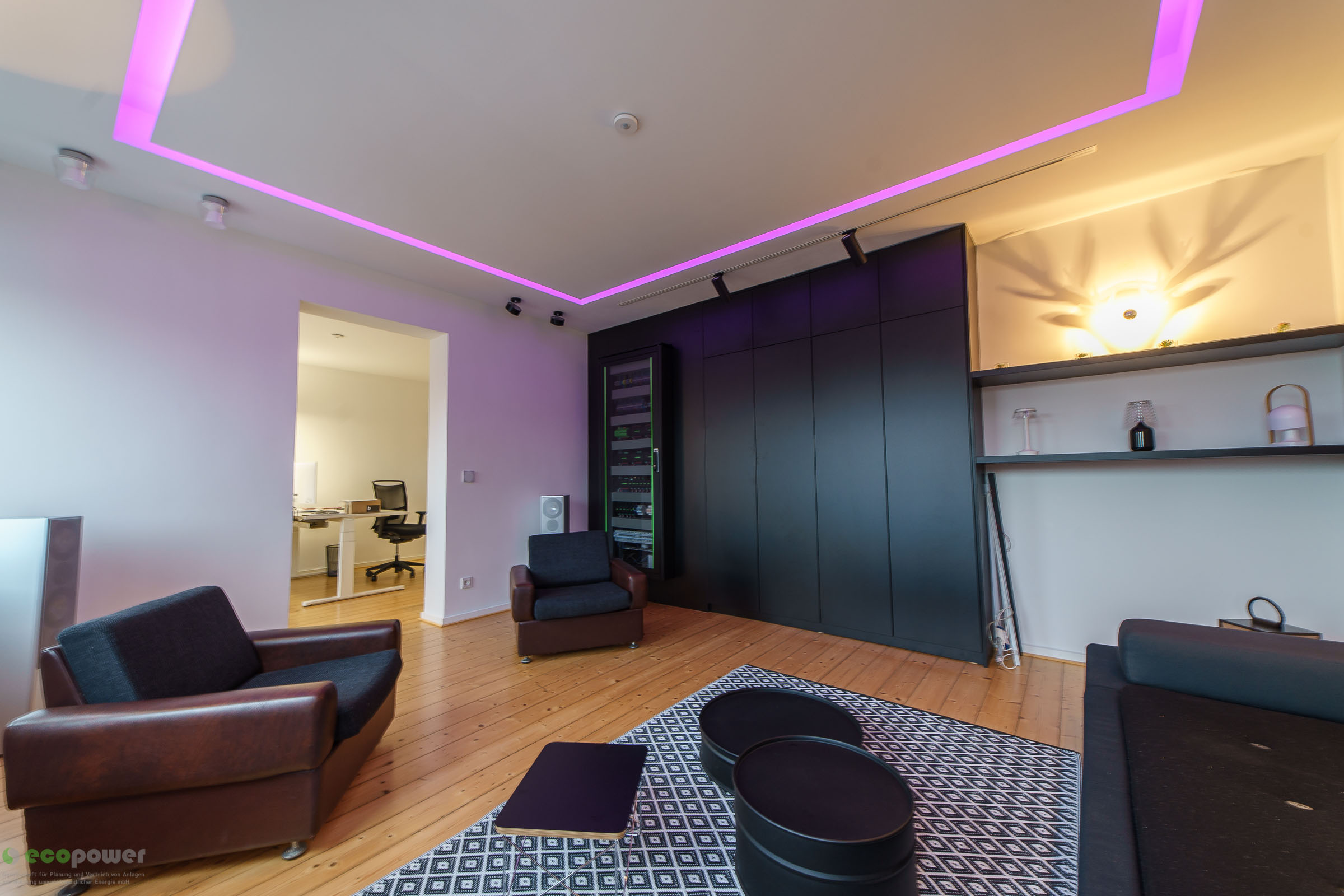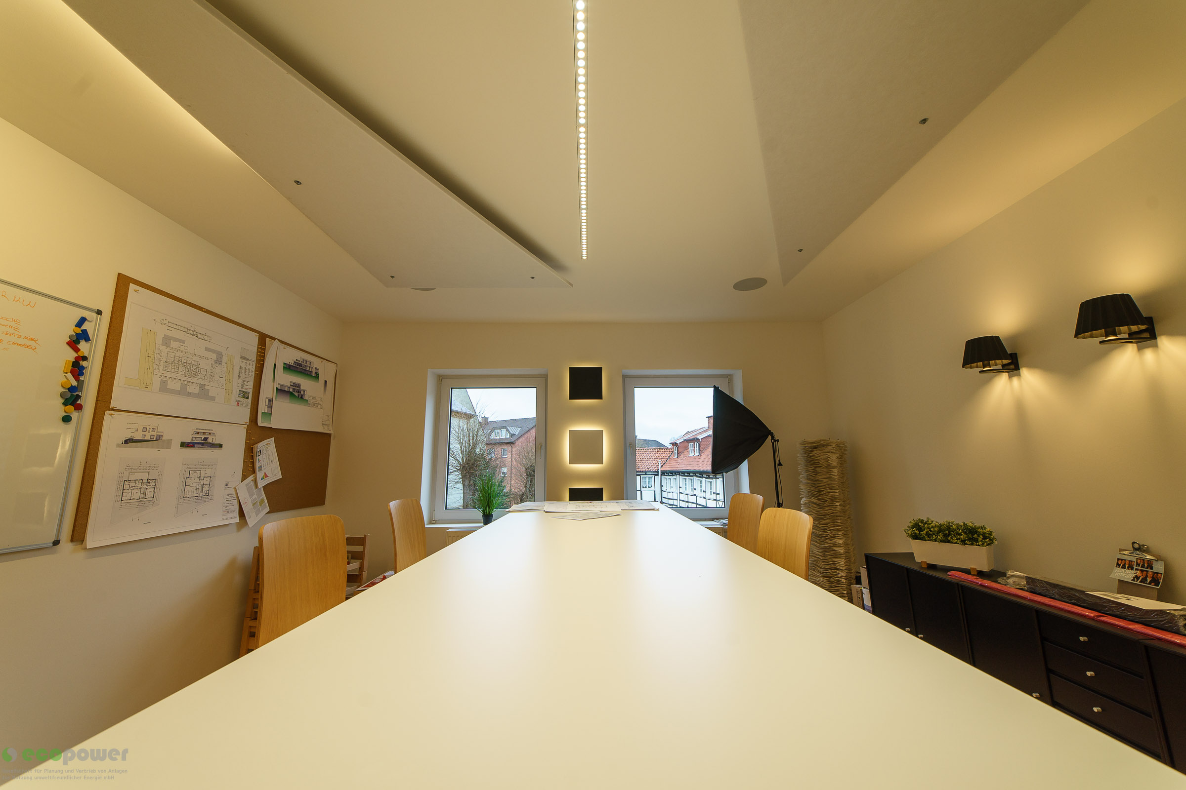 Auch die erste Etage direkt über den ecopower-Räumlichkeiten wurde im Zuge einer Kernsanierung mit smarter Haustechnik von Loxone ausgestattet und gemeinsam mit Lichtplaner Holger Hüpen zu einer waren Wohlfühloase umgebaut. In dieser Umgebung fühlen sich nicht nur die Mitarbeiter der Planergruppe Licht wohl, sondern auch unsere Kunden, welche sich bei einem kleinen Rundgang durch die Räumlichkeiten, häufig das erste Mal mit dem Thema Lichtkonzept konfrontiert sehen.